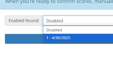 The scores entered then must be confirmed by the league administrator. This is done in the standard score entry screen that you use when not using the live scoring. Navigate to Administration -> Weekly Admin -> Enter Scores and Points. Choose the round in question, and you will see which groups "Needs Confirmation". Click the "Action" dropdown and choose "Confirm Scores". You can then view and edit the scores, mark any players as absent and make any other changes necessary.