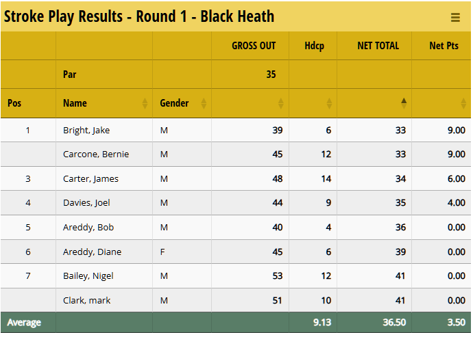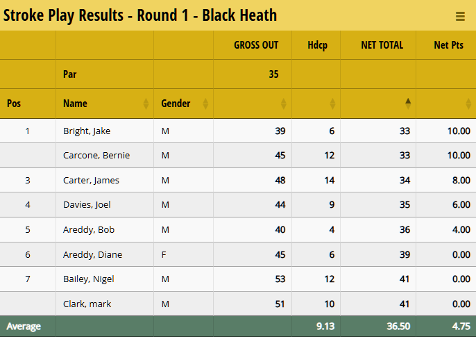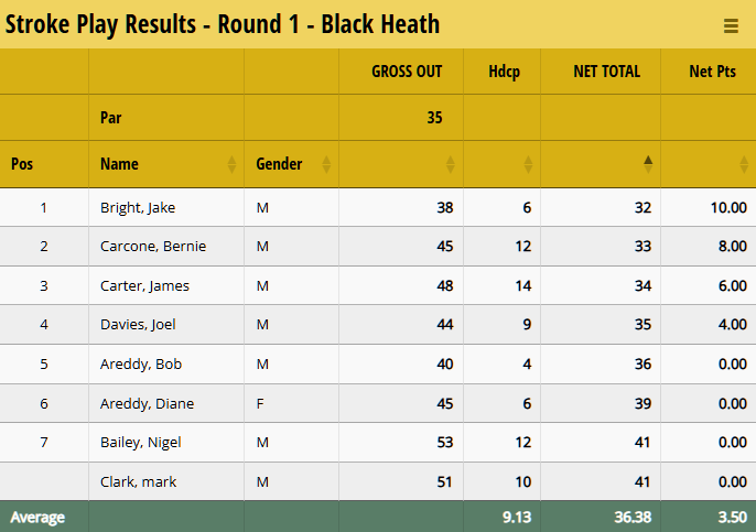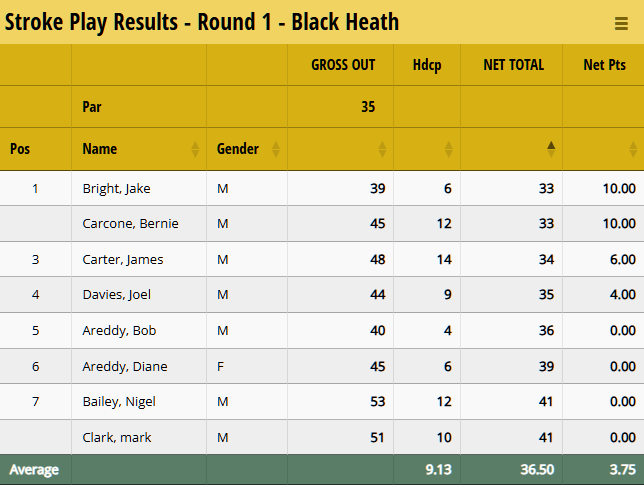 With Golf League Tracker, you can award points based on the position a player finished against the field, with their gross score (no handicap) or net score (with handicap). You can even combine the two if so desired. For the following examples, we're going to be using the Net score, but the concept and configuration is the same if you decide to use the Gross score.
