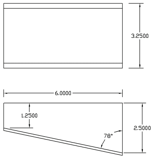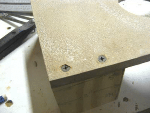The legs raise the hole end of the board about 3” off the ground. Cut out 2 legs out of ¾” plywood or MDF. Each leg is 3” wide. The top of the leg is angled 5°, with the shorter side being 2 ¾” high. Drill two countersunk holes into the main board, and glue and screw the legs to the main board. Make sure the countersinks are low enough so the screw heads don’t stick above the surface.