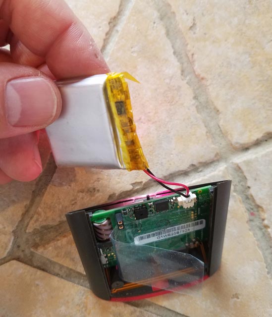 The original battery in the GameGolf is LP553040. LP stands for "Li-Polymer", or in more detail, Lithium Polymer. It's a 3.7V battery, about 650maH. The 650 refers to how much "power" it has, and is instrumental in getting a similar size so that the battery lasts the same amount of time. In doing my research, I couldn't find the exact LP553040 battery except in bulk. If you can find it, it's a simple "fix" where you open up the unit, unplug the old battery plug the new one in. The 553040 refers to the physicial size of the battery in MM. 55 is 5.5mm thick. 30 is 30mm wide, and 40 is 40mm high.